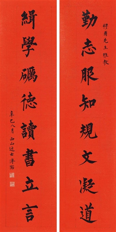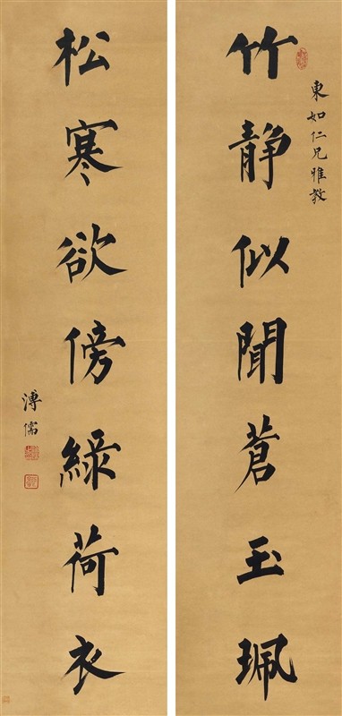 除了楷书外,溥儒的行草书同样令人赞叹。其飘逸潇洒、十分雅致的行草书作品虽然不常见,但展现了他在不同书体上的多样才华。尤其是他的楷书对联作品,更是展示了其书法艺术的精湛技艺和高超水平。