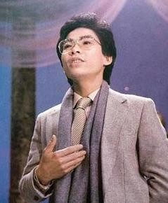 1984年除夕之夜,张明敏身穿卡其色西服,打着棕色条纹领带,戴着复古金丝眼镜。举止温文尔雅,落落大方地出现在了电视机画面上。