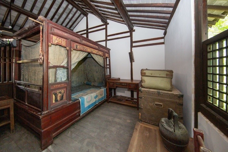 房间里陈列着一些简单的桌椅、床铺和几个外表斑驳的箱子。箱子放在靠后窗的位置,最上面的2个箱子是张闻天夫人刘英后来捐赠的。后窗外还有一个4、5平方米的小院子,张闻天当年种下的芭蕉树,鲜绿的叶子充满着生命的活力。