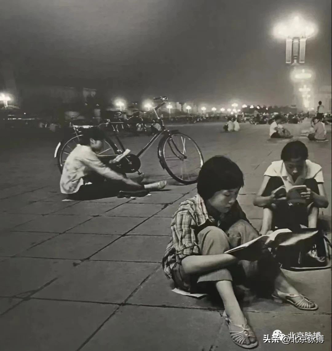 1980年,晚上在广场上看书的人们