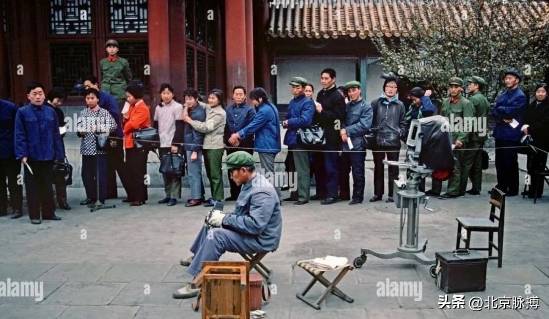 1980年,故宫里的游客们排长队拍照留念