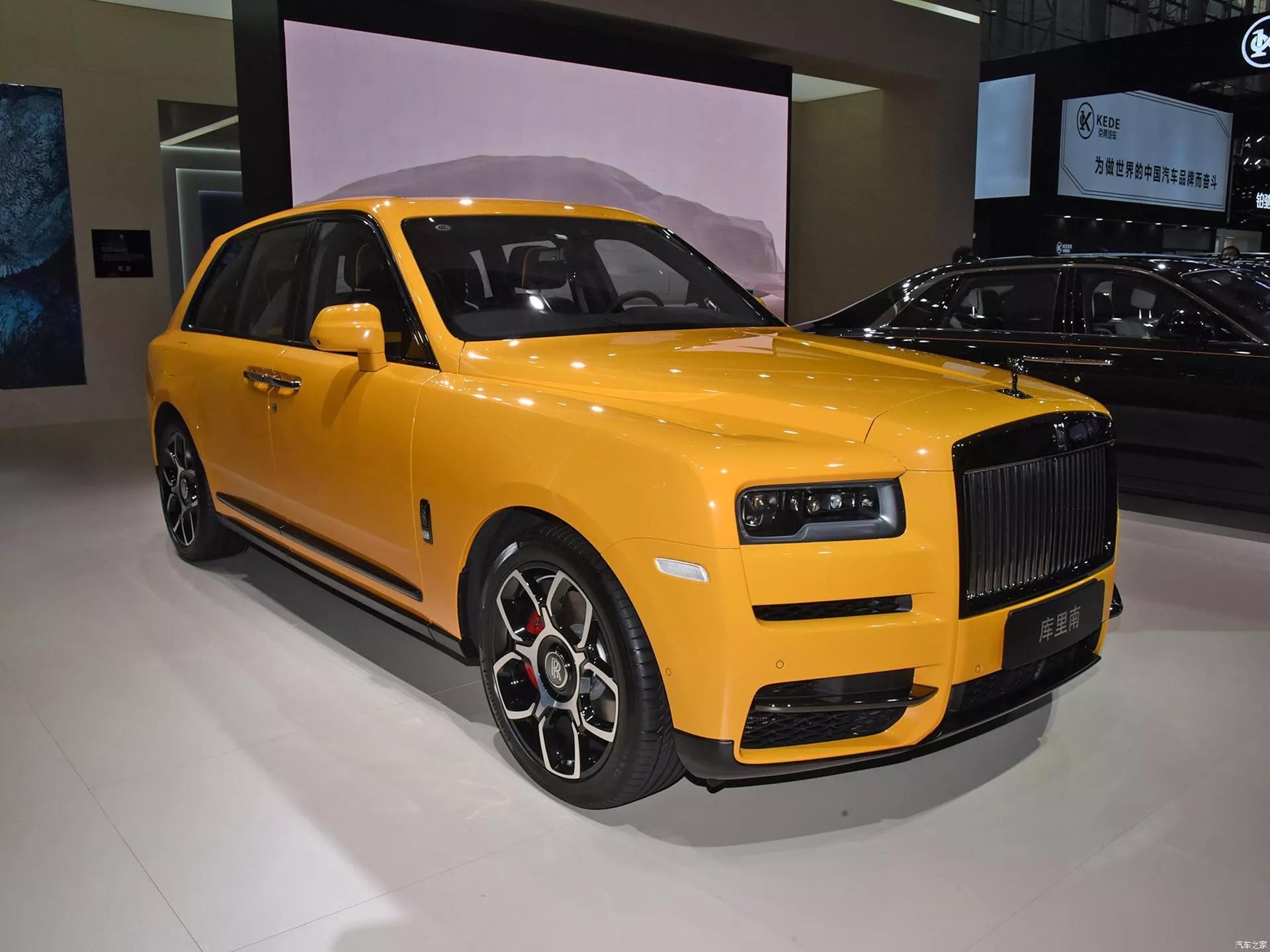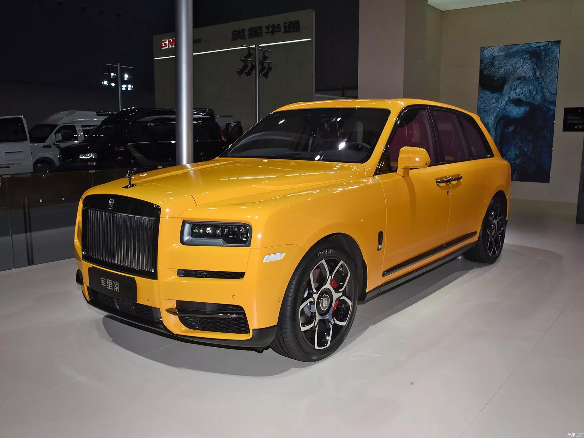 劳斯莱斯库里南,该车搭载6.7T,V12型发动机最大扭矩为900N.m,功率为441kw,有600匹马力,长宽高分别为5341*2000*1837(mm)轴距为3295mm目前市面上最大的劳斯莱斯。