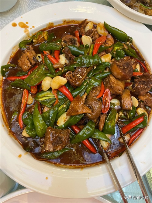 东营蓝海国际大饭店的饭菜非常丰盛,服务也很好。特别推荐招牌蓝海生态炒鸡、酸汤龙利鱼、菠萝咕咾肉、番茄牛腩和酱香肉末炒粉条。这里还有脆皮烤肉,脆而不腻,搭配酸菜非常赞。但需要注意的是,上菜速度较慢。