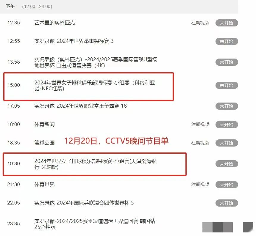 李盈莹登场!12月20日世俱杯赛直播表:CCTV5节目单,天津vs米纳斯