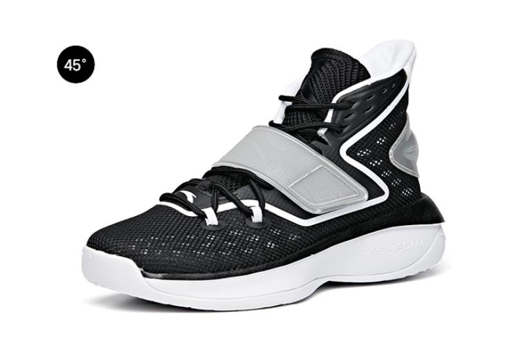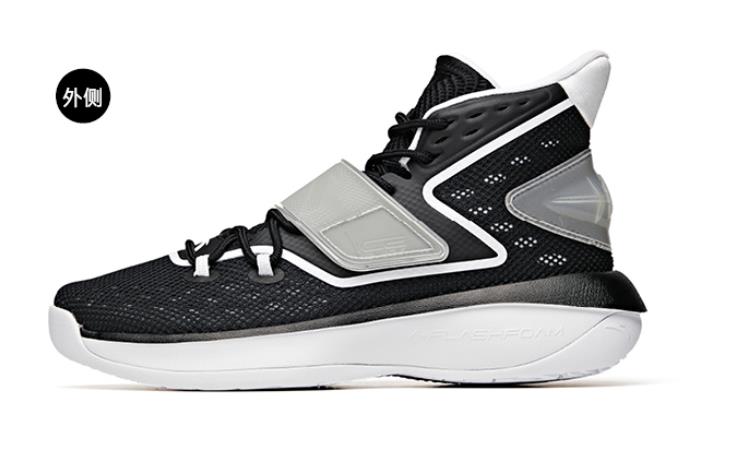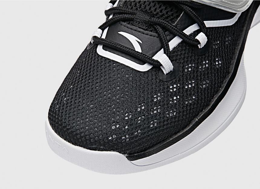 在配色方面,这双安踏KT系列夏日实战篮球鞋的鞋身部分,采用了黑色作为球鞋的基础色调,在球鞋的鞋身部分,采用了白色的线条设计进行点缀,这种黑白搭配的色彩选择,还是相当的经典的,球鞋整体的颜值还是相当不错的。