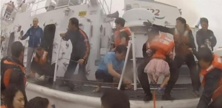 幸好“世越号”的沉没是一个相对缓慢的过程,因此有一些水性好的学生在最后关头还来得及跳船逃生。只是在这片茫茫大海上,即便跳出了正在沉没的游轮,也还是没有脱离危险,黄金救援的时间依然很短暂。