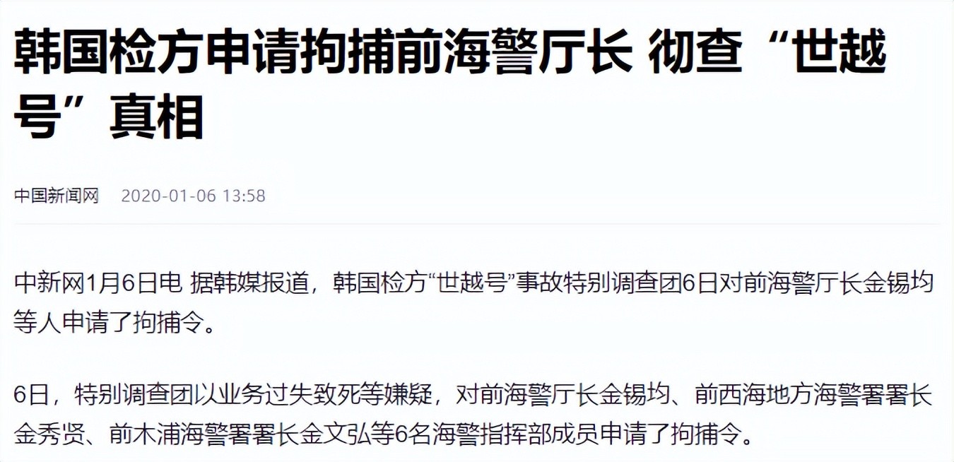 参考资料:《韩国检方申请拘捕前海警厅长 彻查“世越号”真相》—中国新闻网