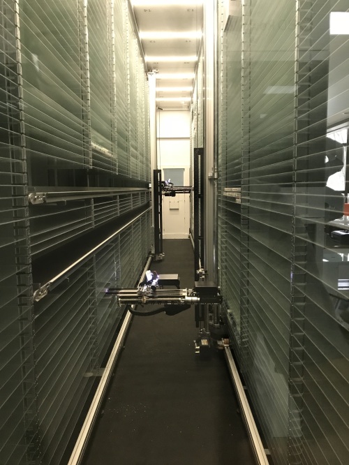 比如,目前医院物流传输系统中轨道物流是国际上先进的医院内部运送医疗物品的方式。在浙江省内,仅有少数医院采用轨道物流,而浙江医院三墩院区是省内首家采用宽箱体小车物流的医院。30厘米的大箱体,能够承载18.5公斤的物品。采用大箱体,解决了静配中心在短时间内精准地将大量药物运送至临床的需求,不仅大幅度提高运输医疗物品的效率,也减少了人员的配置。药剂科还引进了两台价格不菲的摆药机器人,大大缩短了患者排队等待药物的时间,同时进一步保证患者用药的安全性。