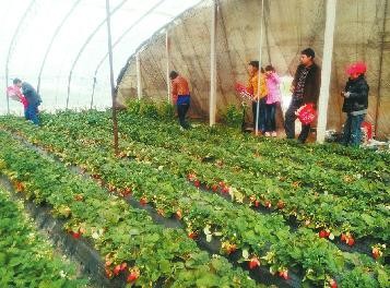 采摘草莓。
