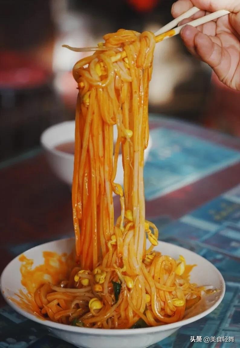 陕西秦镇凉皮距今已有2000多年的历史,它是由小麦面粉、还有米粉制作而成,用料考究,拌入红红的辣椒油,能够热吃、凉拌,还能热炒,吃法多样,口味酸香鲜辣,顺滑Q弹,备受食客喜欢,而且在西安是很接地气的。