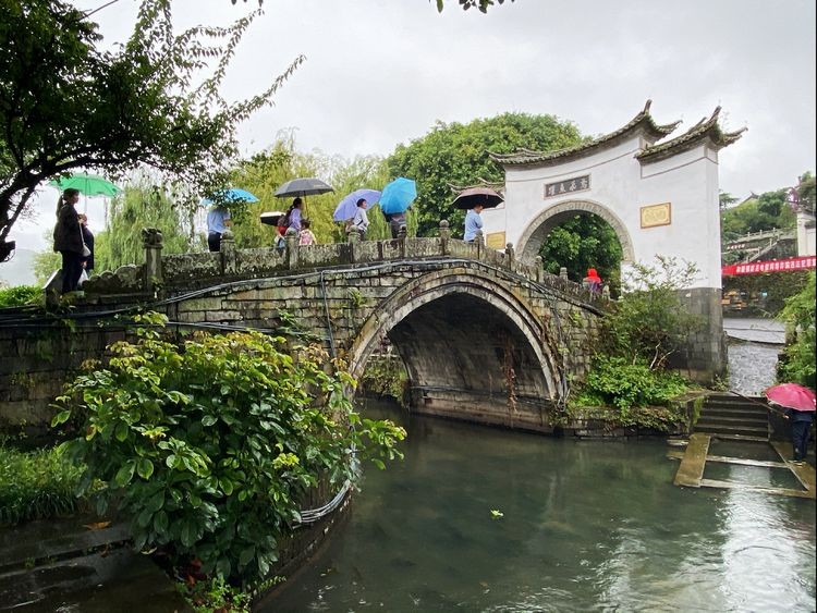 河上有两座石拱桥,因形如双虹,故名"双虹桥"。