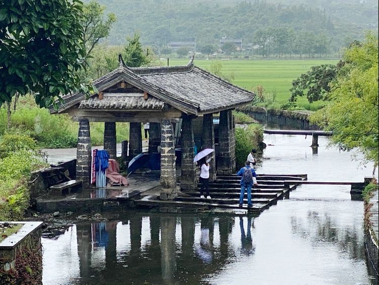 古镇里沿河有多个这样的洗衣亭,这是当年"走一方"的男人们,为留在家中孝敬公婆,抚养孩子的女人们所建的,以便她们洗衣洗菜的时候,有一个遮蔽风雨的地方。
