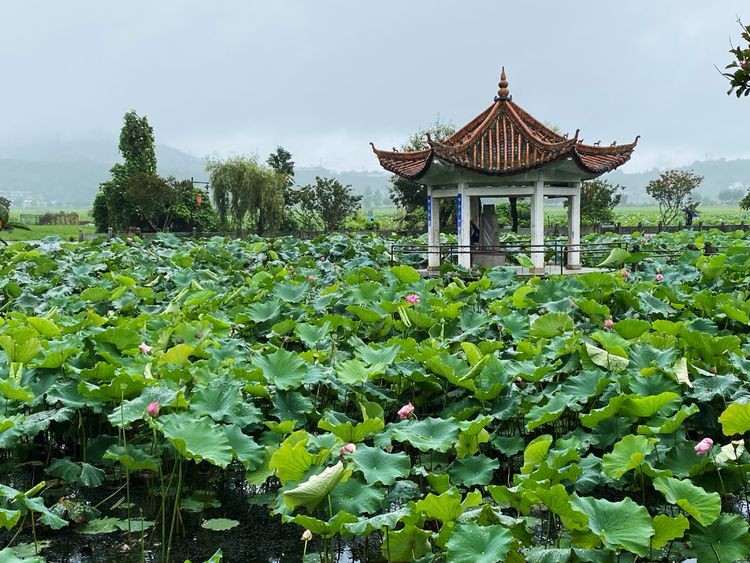 荷花池中的亭子叫"雨洲亭",是乡人为纪念首任和顺益群中学校长寸树声先生而建的,体现了和顺人尊师重教的优良传统。