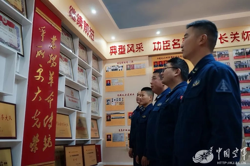 老兵们回顾参观大队荣誉室。