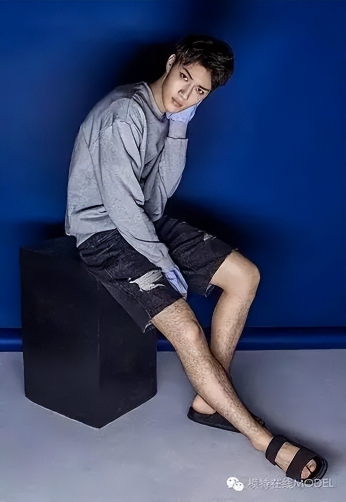 这哥们儿的五官干净利落,皮肤白里透红,即便是一双赤足也很是好看。