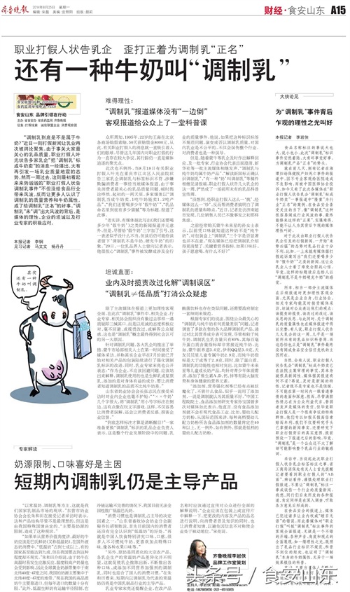 坦诚直面: 业内及时揽责改过化解“调制误区” “调制乳≠低品质”打消公众疑虑