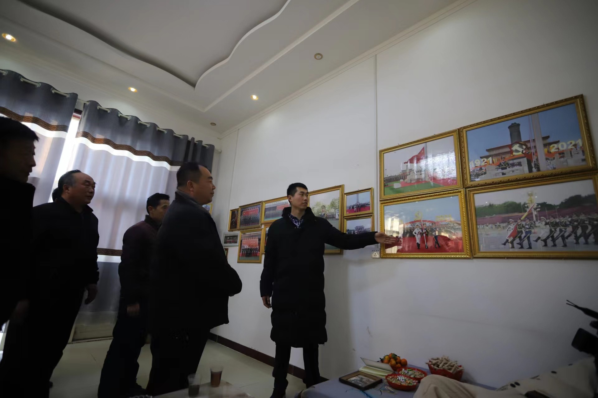张自轩站在照片墙前向大家讲述自己担任升旗手的经历