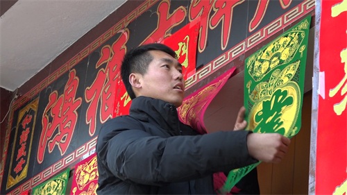 张自轩在家贴春联