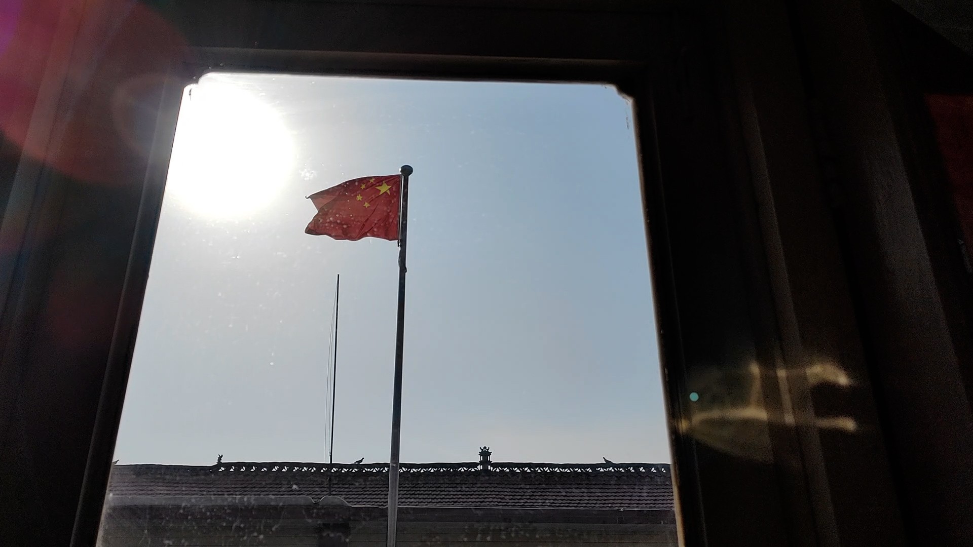 从家中屋内可以看到张自轩父亲立起的旗杆