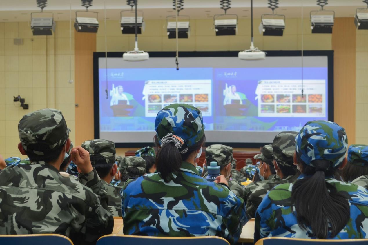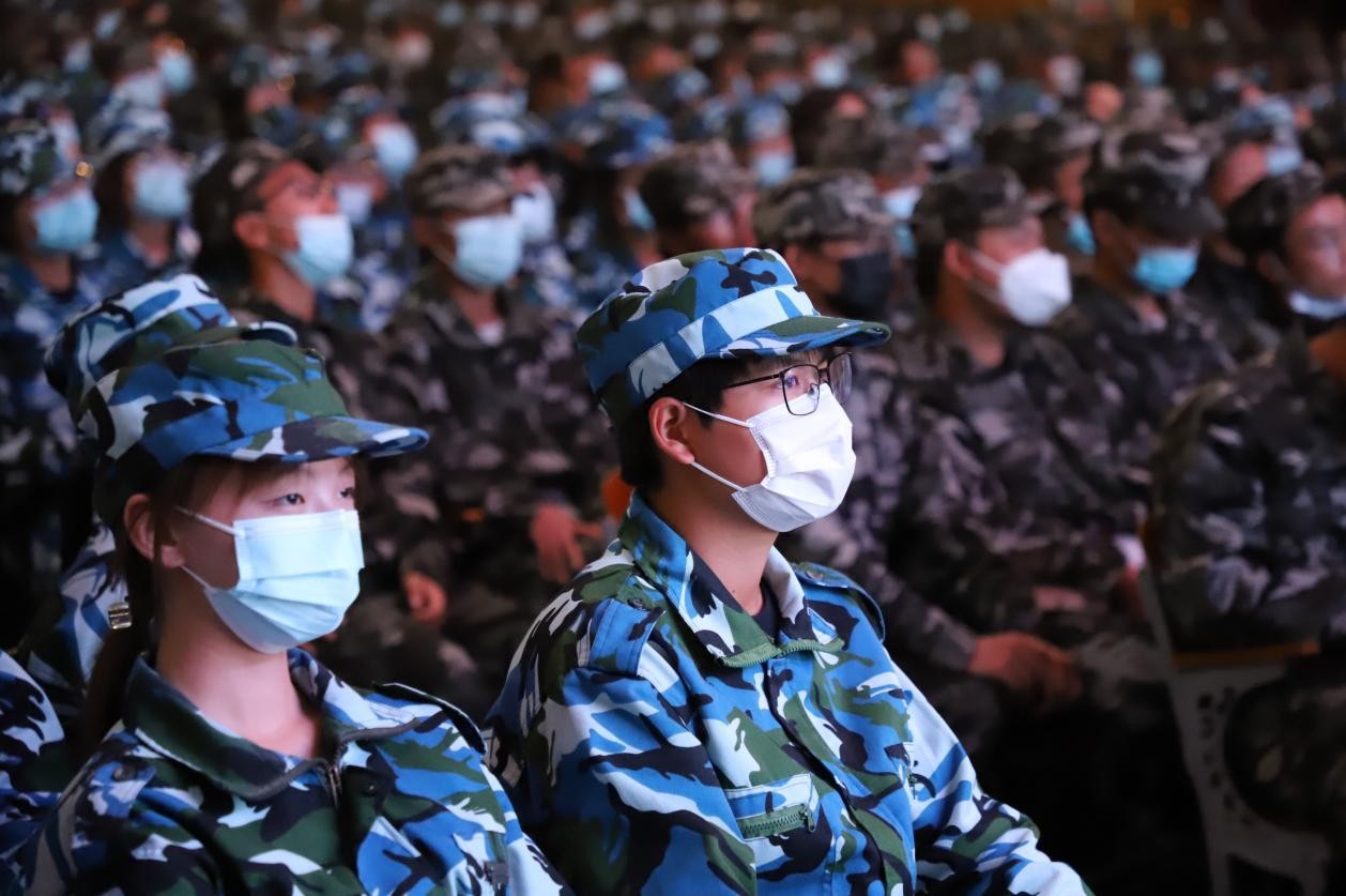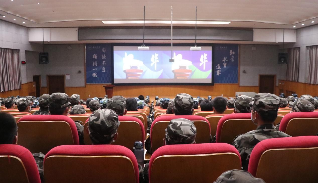 党委常委、宣传部部长安俊堂主持报告会。2022级本科生军训团成员、全体学生工作人员在主会场,军训带队教师、承训教官随2022级参训学生在各会场参加入学教育报告会。