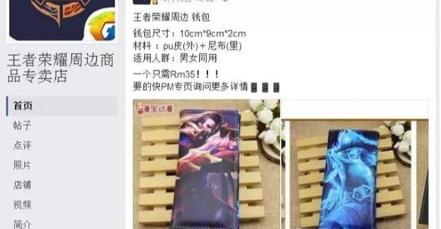 果然是游戏无国界,居然在卖王者荣耀周边产品,而且图片很粗略,一看就是搬运过来的。而且并未做任何处理。上面标价一个钱包是RM35