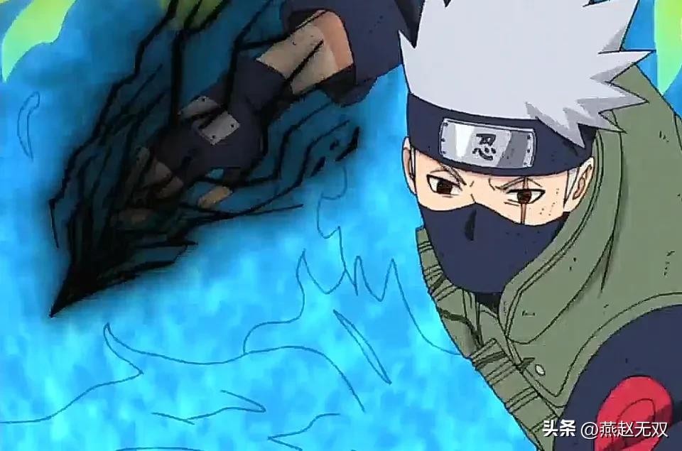 卡卡西双手用雷切,才勉强抵消伪暗。在此过程中,还要不断注入雷遁查克拉,卡卡西双手手套也被烧烂,高下立判。