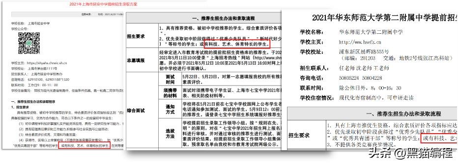国内认可度(高中自主招生): 2021上海延安中学、七宝中学、华二附中等科技特长生招生录取方案