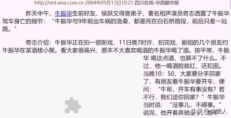 2004年,“笑星”牛振华车祸去世,两天后妻子写下公开道歉信