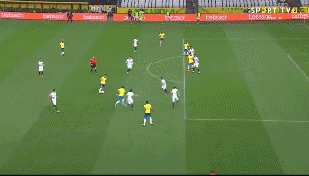 达尼洛右路将球吊入禁区,马金尼奥斯小禁区前甩头攻门得手,巴西1-0领先!