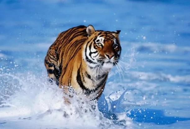 第一名、东北虎。东北虎的学名叫做西伯利亚虎,是全世界体型最大的猫科动物。因为生活在北方较为寒冷的气候环境,因此东北虎拥有极其强悍的生存能力。它们主要依靠捕捉中大型的动物为食,像一些山羊和野鹿、还有野猪,都是它们的捕食对象。由于人们的滥杀,在中国境内的野生东北虎却已经灭绝了,只剩下动物园才能看得到。