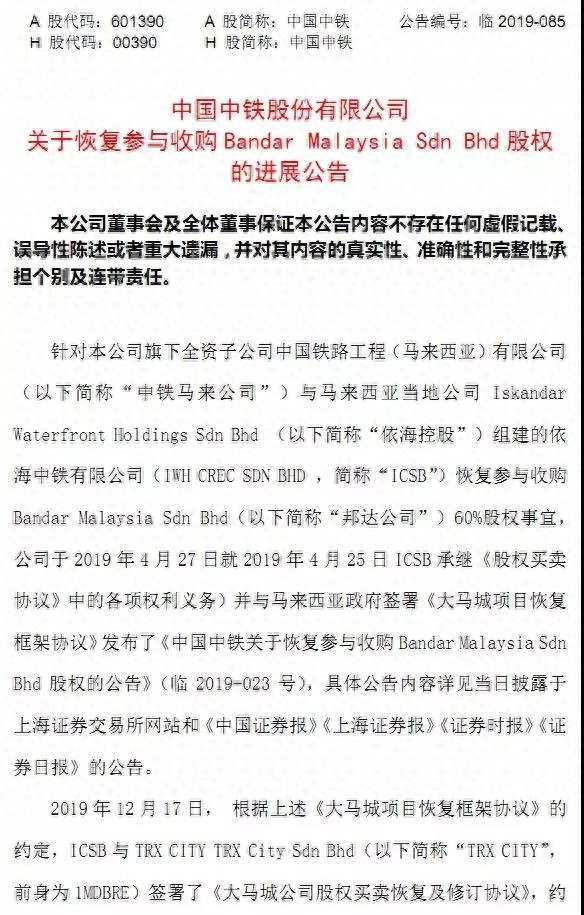 地产圈|中国中铁恢复参与收购马来西亚大马城项目