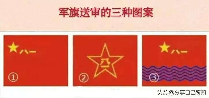 五、从送审三种图案中,选定图①为军旗。图②中的徽为军徽。
