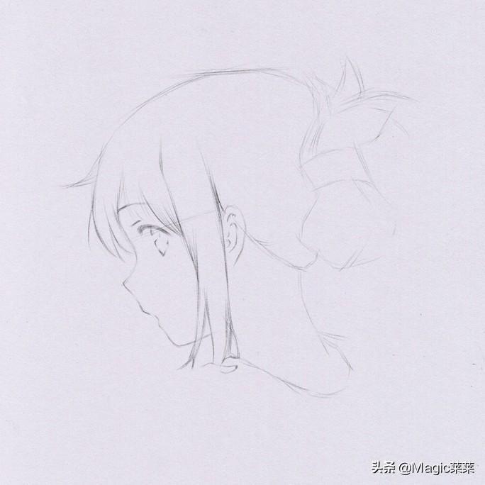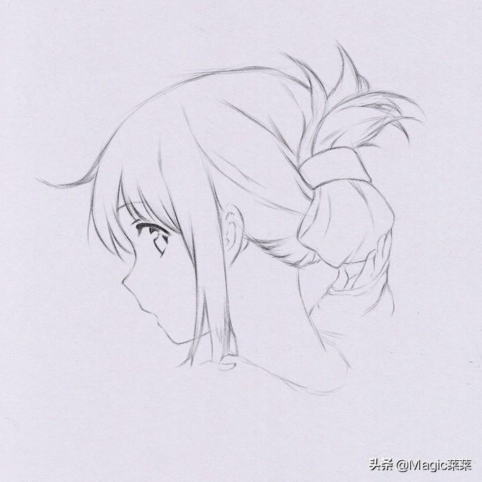 画头发的时候也要注意线条的轻重,在一些转折和头发的末尾可以把线条画的重一些来表现结构。另外要注意线条的走向,可以顺着头发的结构一层一层来画,避免画的过硬过死。