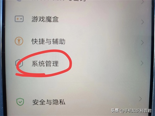 进入设置后,往上滑动,找到系统管理并打开。(如上图所示)