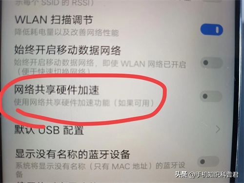接下来,要启用网络共享硬件加速以提升上网速度。往上滑,这里能看到网络共享硬件加速,将这个开关打开就行。(如上图所示)