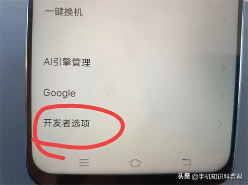 进入之后,我们可以往上翻,到达底部之后你会看到一个开发者选项,打开它(如上图所示)