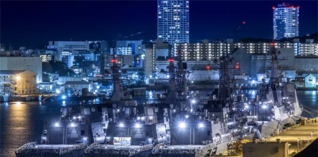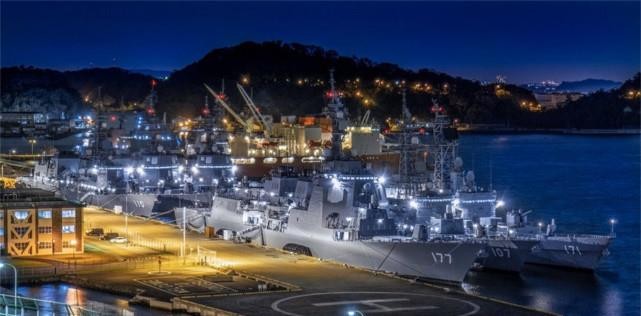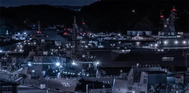 有网友夜间探索日本军港中心,发现港口里停满了各种军舰。码头停泊着6艘驱逐舰。日本海你的实力已经远远超出了外界的预期。有多强?