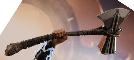 风暴战锤的一面是斧型,另一面则是锤型,这和《复联3》中雷神的暴风战斧基本相似。