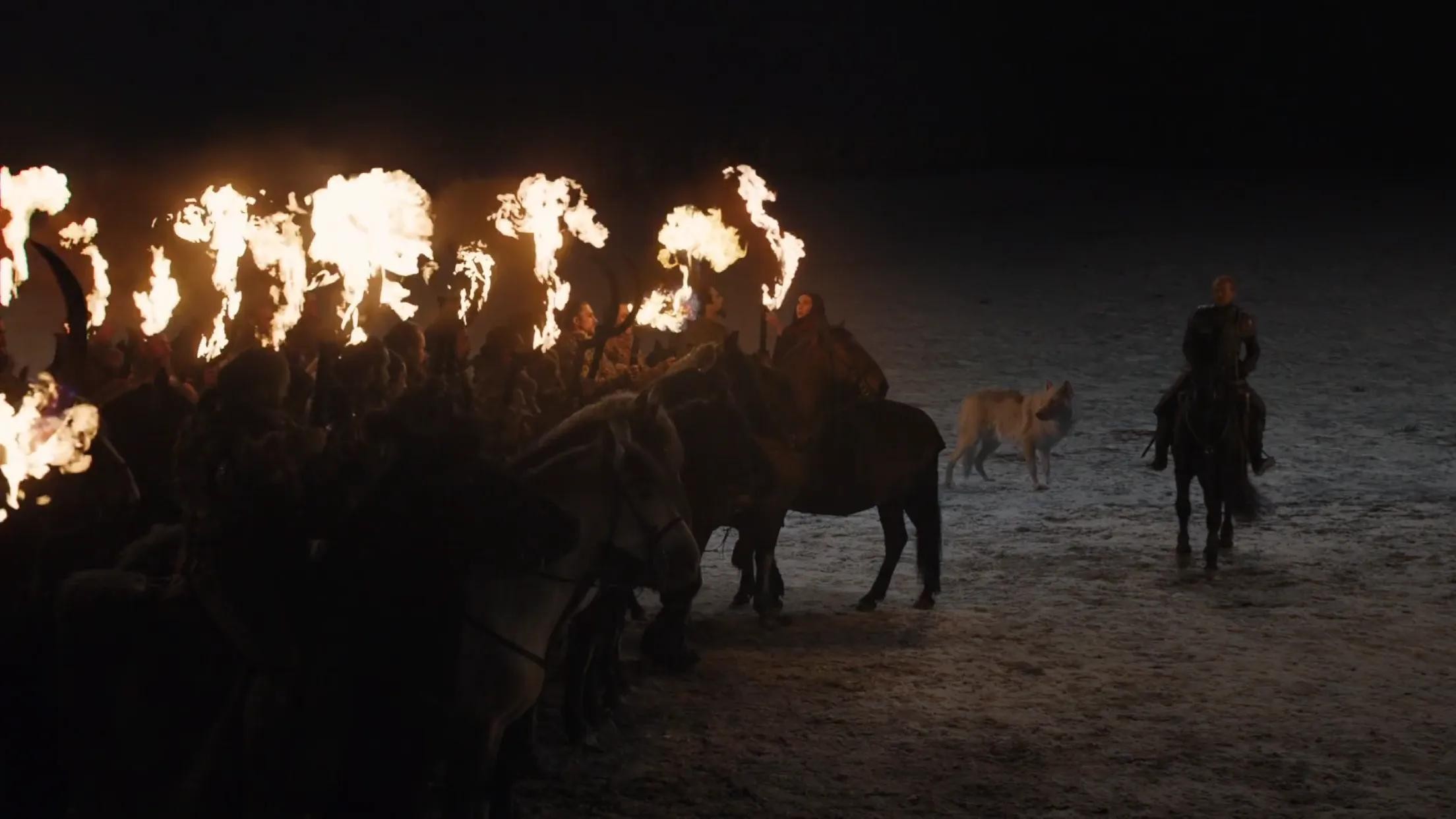 在夜王和他的部队即将要到达城墙边的时候,无垢者怎么也点不燃战壕,只能把把希望转向红袍女,希望她能够点燃战壕形成火墙。而红袍女也不负众望,在最后的一刻点燃了,一瞬间火光冲天而起,在临冬城外形成了一圈火墙,暂时止住了异鬼前进的步伐。但是好景不长,异鬼攻破城门,众人在城中和异鬼展开了激烈的搏斗。