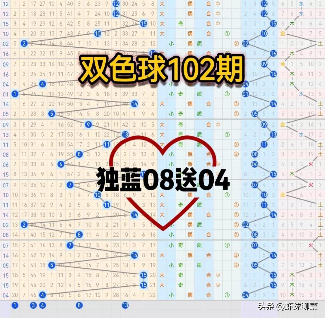 双色球102期,独蓝一码08防04。