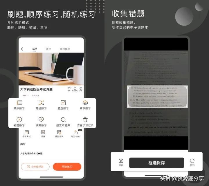 里面分成了很多版块,有随机练习、章节练习、错题练习等等,还能收集错题,拍照将错题收集起来,制作成电子错题本,可以随时随地的高效学习了。