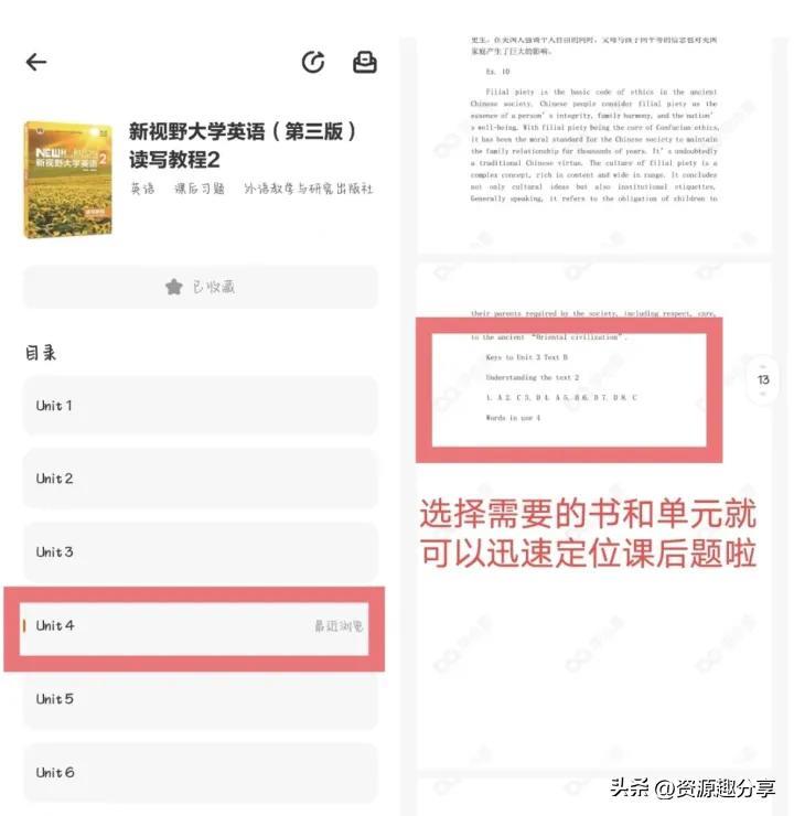 智能解题、拍照答疑,大学里的课本里面基本上都同步了,找到对应的课本就能查看里面的题目。