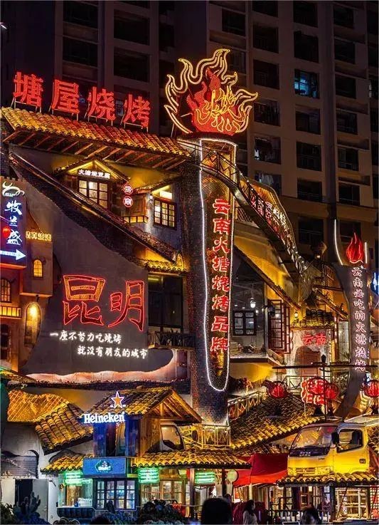 在这里,你可以品尝到各种美食,烧烤、火锅应有尽有,很多店铺的装修精美,也非常适合打卡拍照~