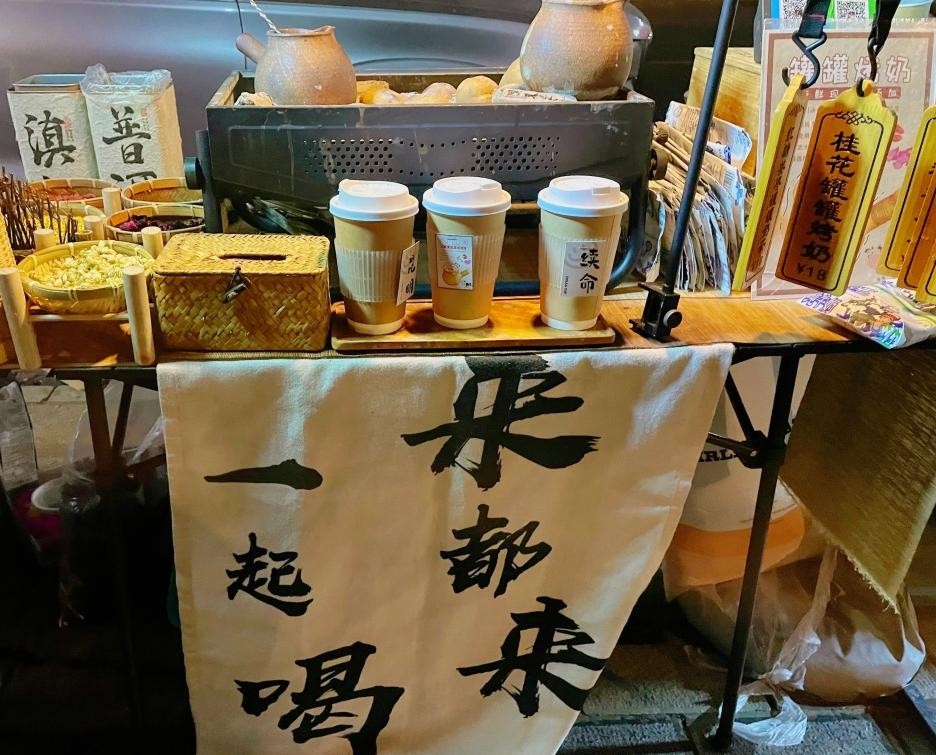 在这里,可以打卡各种特色小吃,自制汉堡、炭火烧烤、铜锅方便面……点一杯普洱茶烤奶慢慢品尝,感受风的形状,享受宁静的时光。