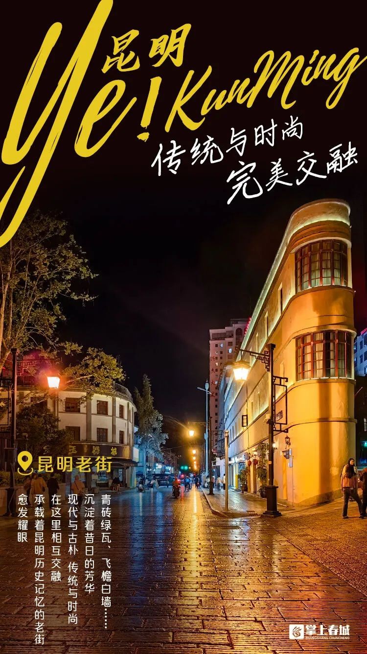 昆明老街由光华街、文明街、景星街、钱王街、南强街等老街穿插交错构成。夜晚行走于古老的石板路上,繁华的老街上商家云集,店铺鳞次栉比,一砖一瓦处都惊艳了时光。