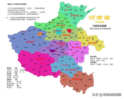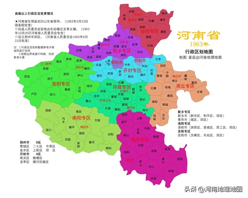 根据河南省民政厅官网行政区划沿革资料和互联网上获取的河南行政区划历史数据,加工制作的河南省行政区划变迁地图1963-1978,每年一幅地图,分享给大家,地图仅供参考,有问题可留言交流,谢谢。文末提供大图打包下载。