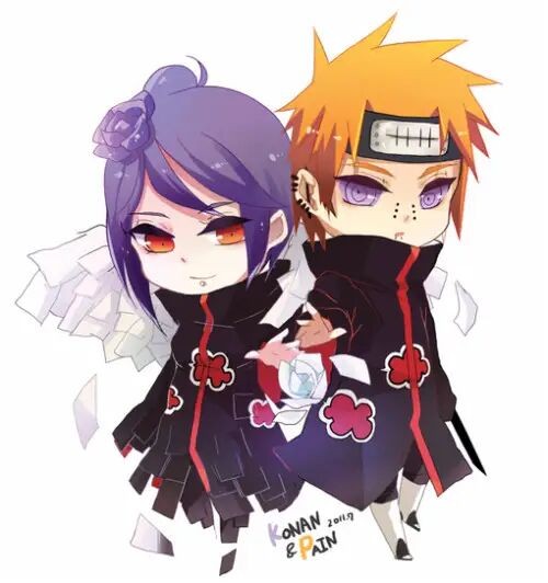 还有小南和佩恩,本来火影中小南和佩恩(弥彦)长门的关系就很亲密,现在Q版的小南和佩恩更是很般配,仿佛天生一对,小南在火影中本来就是女神了,现在Q版的小南看起来更是可爱迷人,而佩恩也依旧有男神风范,特别是小南被称为天使,而佩恩自称为神,就更加般配了。