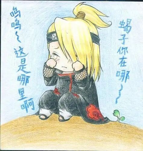 最后就是我们的迪达拉小迪了,迪达拉在晓组织中是年龄最小的,而且性格还有些逗,火影迷们都喜欢喊迪达拉小迪,火影中迪达拉就经常喊蝎为蝎大哥,Q版的迪达拉更是可爱到爆,一个人攥紧了小拳头在哭,还不停的在喊蝎,真的是太可爱了。