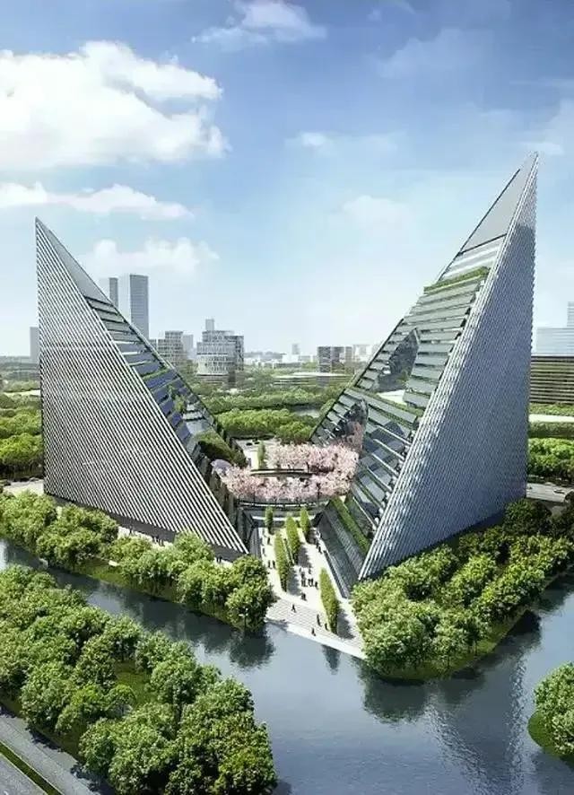 vivo也来杭州余杭未来科技城在OPPO的隔壁盖一个V塔——杭州vivoAI研发全球总部。占地约54亩,由美国CallisonRTKL主导设计,V字造型两边高分别为26层165米和21层140米,买地花就了近6亿,总投资接近22亿。