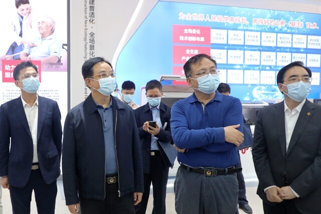 在圣湘生物科技股份有限公司,调研组一行认真听取企业负责人生产经营、研发创新、科技抗疫等情况介绍,详细了解新冠病毒核酸检测试剂盒等抗疫产品生产情况。得知企业研发的六项呼吸道病原菌核酸检测试剂盒(多重荧光PCR法)日前收到国家药品监督管理局颁发的《医疗器械注册证》,向曙光希望企业加强科技创新,不断满足多元化的市场需求,进一步增强公司的核心竞争力,市场监管(药品监管)部门将加大支持力度,为企业产品研发、注册做好服务。